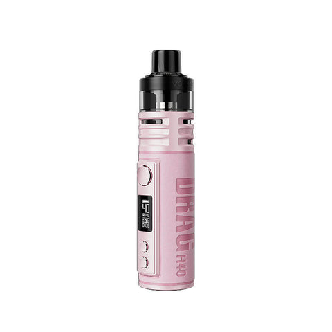 The VOOPOO DRAG H40 is sleek and pocket sized. It keeps the iconic look and feel of the DRAG series with stylish leatherette panels. This not only looks great but feels even better to hold. The front of the kit has a handy OLED screen that shows battery capacity, wattage, coil resistance and puff count. There’s also + and – buttons to easily adjust the power.